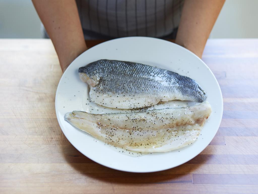 Season the flesh side with kosher salt. Branzino fillet recipe pan fried. Grilled branzino with lemon and olives elana horwich.