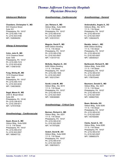 Physician Directory Thomas Jefferson University Hospitals